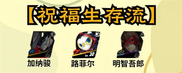分析:路菲尔、加纳骏能为队伍提供优秀的生存。明智吾郎需要时间来获得足够层数的祝福,提升自身伤害。路菲尔、加纳骏可以为明智吾郎提供生存的保障。