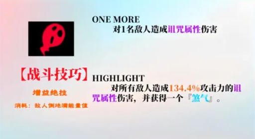 2、HIGHLIGHT:对敌方全体目标造成诅咒属性伤害,自身获得【煞气】效果。