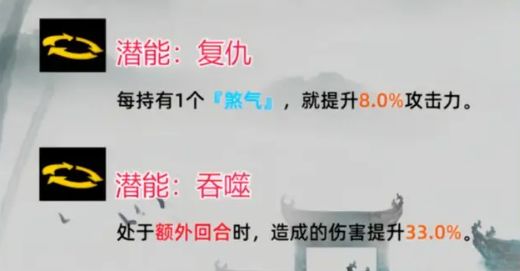 3、煞气:若场上敌方生命低于50%,自身获得【煞气】效果,叠加三层时获得额外回合。
