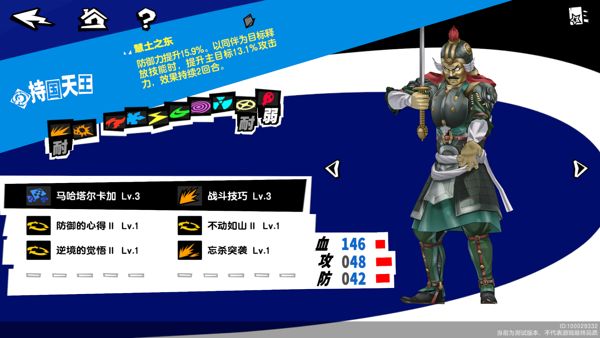 30级推荐的面具,这里首先推荐到了持国天王,所有技能都是给队友提升攻击力的,并且自身很硬,不容易死,能给队友提供大量的攻击力,是非常通用的一张面具,不过配方合成需要约会协同5级,需要肝一下。