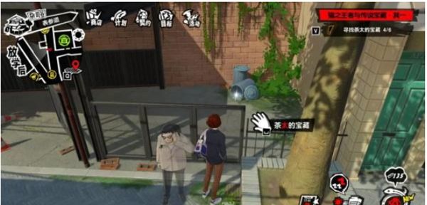 5.再往右边的岔路口更深处走,在家的背后有个大叔在看着花盆挠头的,他会显示“茶太的宝藏”,但是需要玩家去到涩谷的花店那里买一瓶特效营养剂(免费)。买好之后回到这个地方,再次点击和大叔对话,大叔就会让开给你拿宝藏了。
