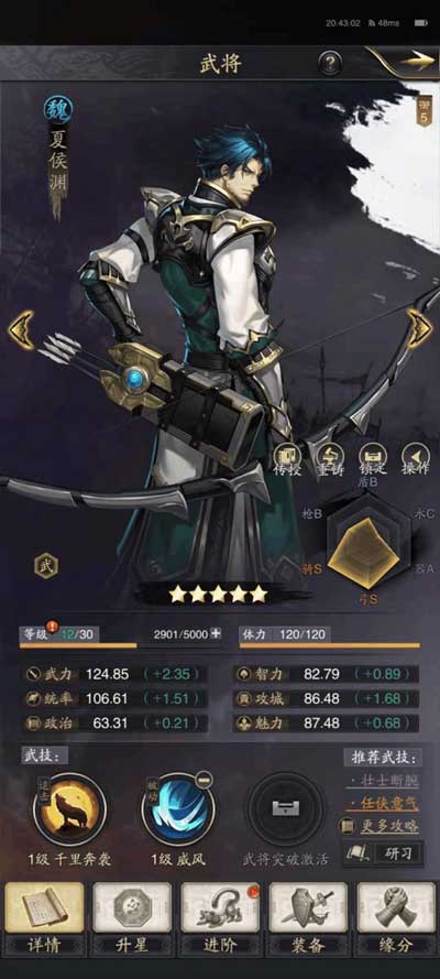 这样得到的兵书就包括了该武将从一级到当前等级的全部经验的90%,接下我们找到想要快速升级的新武将,点击研习兵书就可以得到兵书的全部经验了,这样就越过了枯燥的练级环节,迅速形成了战斗力。需要注意的是,武将生成的兵书也有等级之分,低等级的兵书是无法作用于超出等级限制的武将使用的,而且想要研读本书的武将要提前恢复好体力,研读是需要消耗很多体力的。