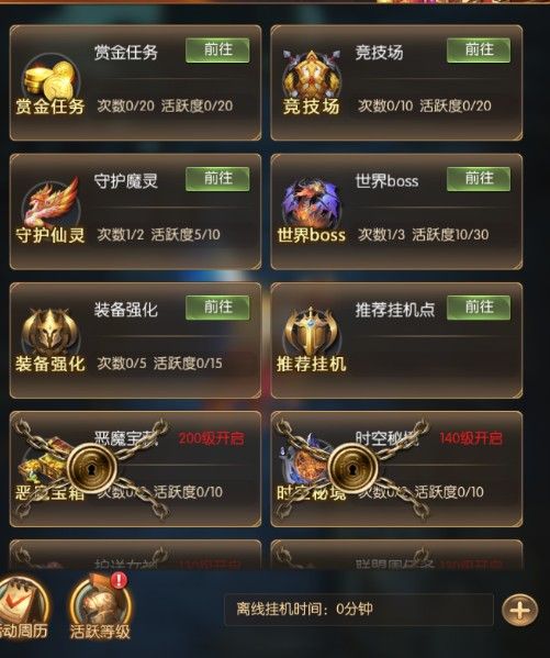期间挑战世界boss开启,可以从中获取很多稀有的装备,有了这些装备就不用把金币花在普通装备的强化上了;看见世界boss刷新了一有空就去刷吧!