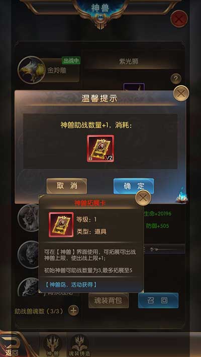 助战的兽魂数最多为3个,但可通过神兽拓展卡来进行拓展,最多拓展为5个。