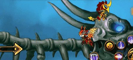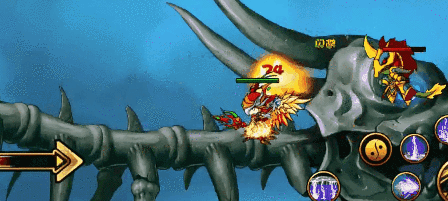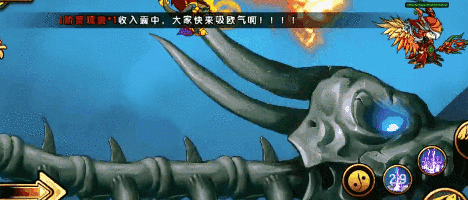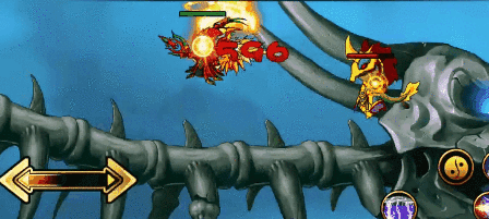 >龙焰火雨:将手中龙珠举起,地面燃起火柱、天空掉落流星火雨(生命低于50%施放)