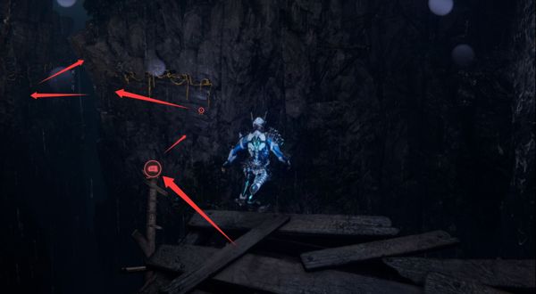 到达此处时,使用两次飞檐走壁向上攀爬。