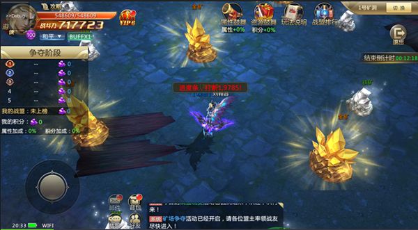 矿洞内可采集矿石,争夺金矿,积分最高的公会获得矿场争夺胜利,可获得丰厚奖励
