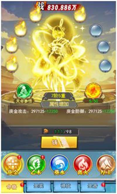 天命命格按照五行划分,由低到高分别为庚金、乙木、葵水、离火、厚土;当上一级命格达到对应的等阶时才会开启下一级命格;当命格升到对应等阶后,可以提升天命参悟来提升命格的属性,同时还有不同的命丹用于提升天命造化的等级。