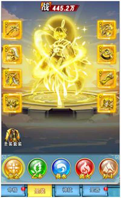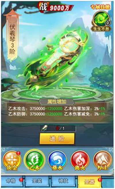 天命圣器按照五行分为混元金斗、伏羲琴、定海神珠、九火神龙罩、山河图五大圣器,圣器可通过镇魂寻宝或活动获得;每激活一个圣器都可获得大量属性加成,激活圣器后还可以消耗圣技书激活圣器专属技能,圣器等阶越高,圣技所能提升的等级也就越高。