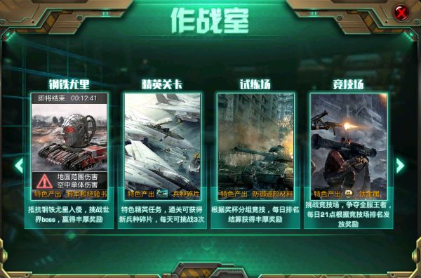 游戏中打开作战室,选择钢铁尤里,可以进入钢铁尤里挑战。