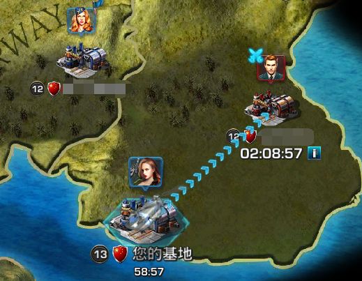 入侵玩家时,点击入侵,会出现一列箭头,由入侵方基地指向被入侵方基地,一架飞机出现在该箭头上,入侵需要一定时间,点击飞机可以查看,也可以点击立即到达,使用钻石或者入侵道具消除CD时间。