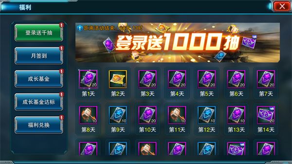 1、登录送千抽,让你轻松补齐阵容英雄。