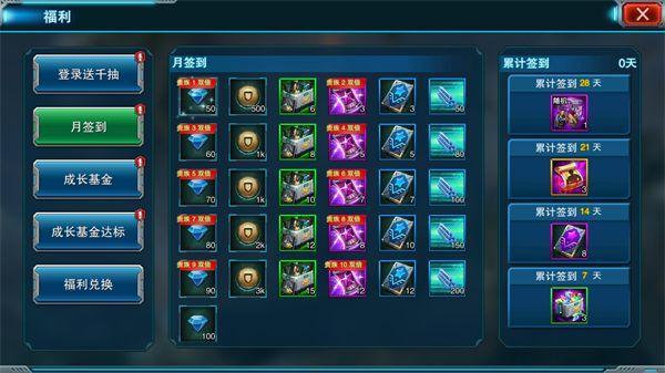 2、每日签到领取大量奖励,累计签到还能领取稀有奖励。