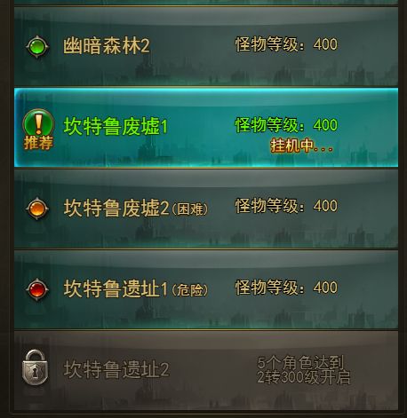 每个地图会分有容易、推荐、困难、危险、未开启等五种。