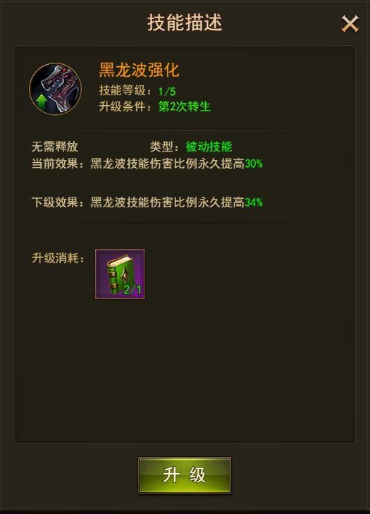 玩家达到一定转生等级要求时,可对技能进行升级,获得更加强力技能效果