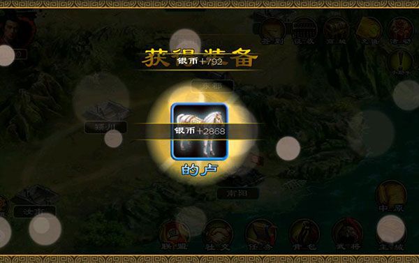 开发可以增加每10分钟城池生产出来的银币(所谓粮草先行,银币需要好好收集免得到时强化啊主城啊升级的时候泪目等待),等级越高,每次收获的数量越丰盛。除此之外,最重要的是获!得!装!备!城池等级低的时候,收宝箱只会有少时候爆出白装。但是,随着城池等级越来越高,爆装备的概率是会大大提升的。小编表示亲测:城池开发等级在8级左右:白装有的是,蓝装不在话下,紫装总会给你惊喜。