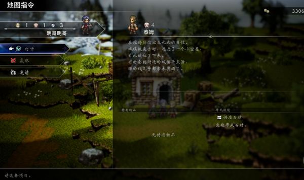 不过在踏上旅途的路上,维舒贝尔也需要人打理,所以当务之急我们需要找先搜罗到能帮我们看家的村民