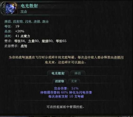 电光散射+阿尔琼的勋章+亢奋+闪电协调+分叉+快速攻击Ⅱ