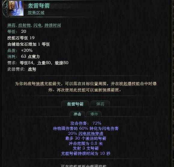 轰雷弩箭+范围击中+元素军械Ⅱ+闪电穿透+闪电协调+闪电专精