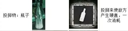 10、投掷物:瓶子,投掷此道具来让敌方产生硬直,一次性消耗。