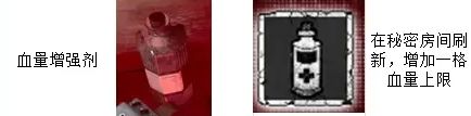 15、血量增强剂,使用后增加1格血量上限,隐藏房间道具。
