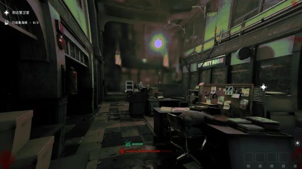 2、画面扭曲:减少1-2格理智后触发,间接性出现颜色形状扭曲,导致难以看清地形和道具。