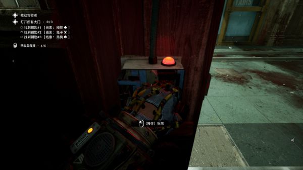 这种陷阱可以直接从正面蹲着推开;也可以长按鼠标左键慢慢开门,然后就可以从后面直接拆掉给陷阱供电的电池。