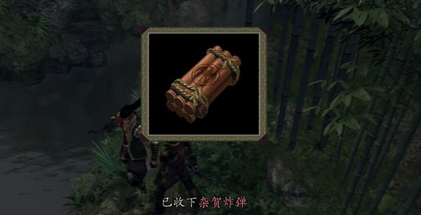 这炸 药给竹林这边龙雕像旁边的石堆用,炸开里面是个宝箱,开启获得绿色项链。