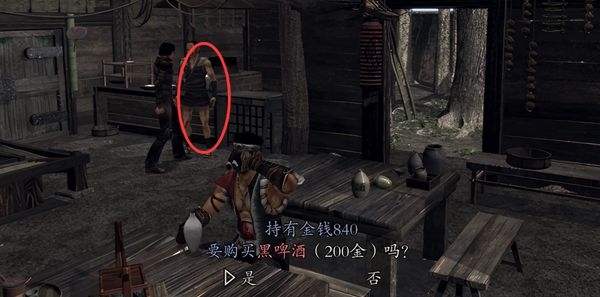 找门口的NPC对话能花200金购买到黑啤酒,将黑啤酒赠送给孙市,获得回礼药丸。