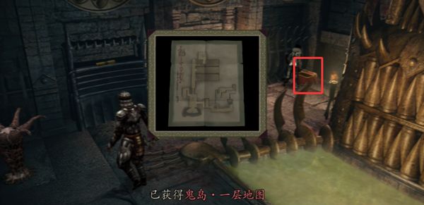 迎面就是几个敌人,解决掉往前走进门,就在门旁边是个宝箱,开启获得寻鬼岛·一层地图。