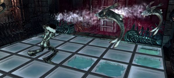 往前走进门清怪,再往前进门,这里是鱼怪,地上的洞会跳出来鱼怪,趁机攻击。