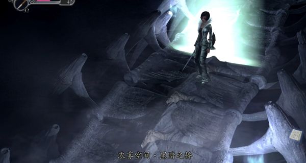 然后将墙上那个张牙舞爪的怪物打掉,从出现的奇怪光进到墙里面去抵达浓雾空间·黑暗之桥。
