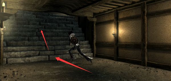 恢复控制后,操控阿邑往前走下楼,往前走,上前面的台阶。