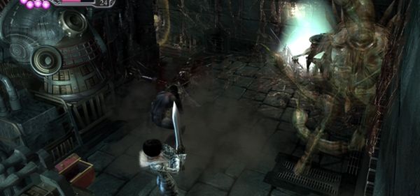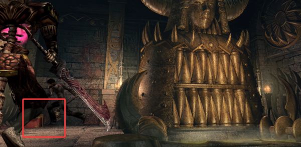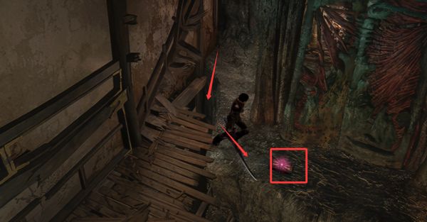 往回走,进牛头铁门过来,这里还有个紫色的礼盒状物品,挥砍一下获得里面的猛药。