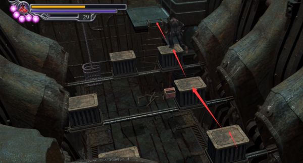 结束会发现到高女剧情的空间,然后去存档点的地方,进旁边的门里,往里走到升降台的位置。