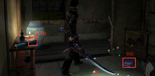 开门进去拾取到桌上的美人图 花散里,地上的藤吉郎的日记,然后站在绿色光晕的地方使用绿色幻梦楔子进入绿色幻梦空间。