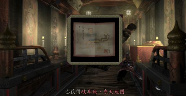 出来后往回出门,然后走另外一边到尽头进房间里开宝箱获得岐阜城·东天地图。