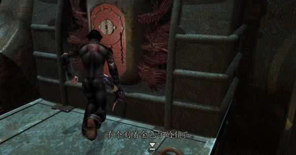 往回走到拿地下室地图宝箱的位置,爬上梯子,使用刚刚获取到的黄金刻字钥匙。