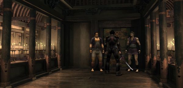 船会带着玩家到新建筑的地方,船停靠后上台阶,将扒在墙上的敌人击败后进门。