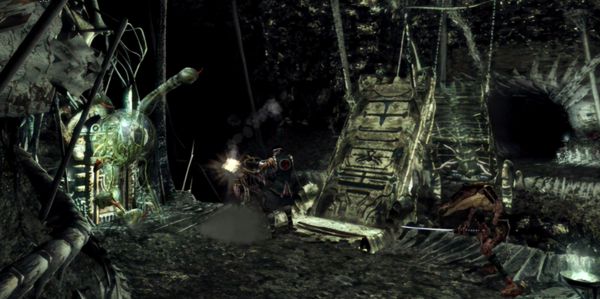 剧情结束后回归到十兵卫的视角,然后操控他回到之前旋转机关的地方。