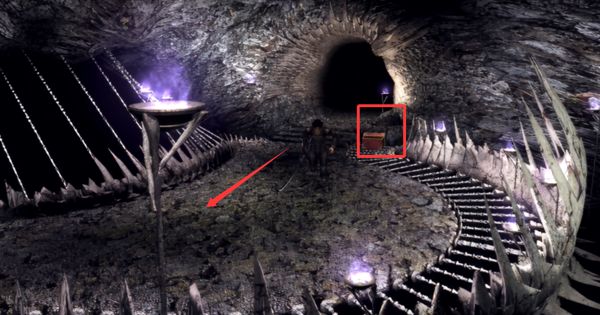 清掉周围的敌人,从门这里顺着小道往上走,地上有个紫色礼物盒状的物品,看一下获得里面的药丸。