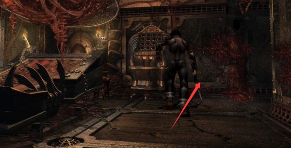 往前走到升降机关这里,利用武器上去拾取闪光点,获得红珠钥匙。还有地上紫色礼盒药丸。