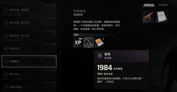 3、完成支线任务“狩猎雅加”可以获得史诗猎 弩。