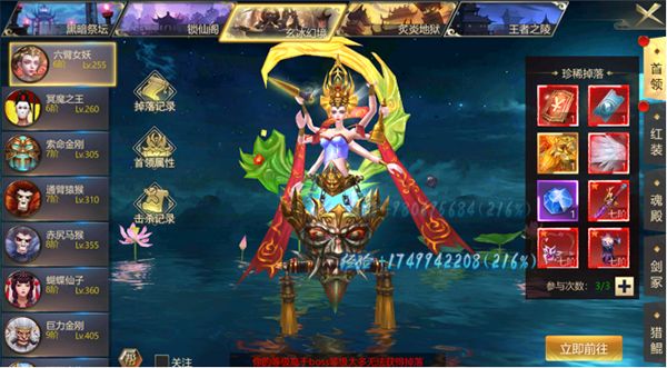 首领可从主界面图标进入,共有五大地图,每张地图还有不同等级和阶数的boss,等级和阶数越高,boss的难度越大,但奖励也越丰厚哦!首领的boss产出珍珠充值卡,丹源圣地门票,幻化,幸运石等珍稀道具和超强装备,仙友们记得每天都去挑战boss哦!最后需要提醒的是,首领的副本一天只能进入三次(只有获得掉落归属才计入次数),但是通过提高vip等级可以购买额外次数哦!还有高于boss100级的话是无法获得掉落奖励的哦!