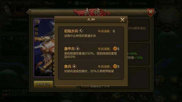 点评:前期孟获,关索,祝融非常好用,特别是祝融自身技能有35%眩晕在加上兵种35%眩晕控制能力极强,跟 庞统有得一拼。
