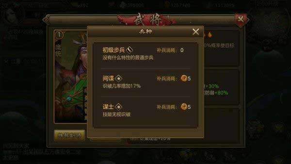 点评:庞统升星有识破30%在加上兵种17%识破几率大大提高,可以一用,但是我觉得庞统还是用重怒兵要好。
