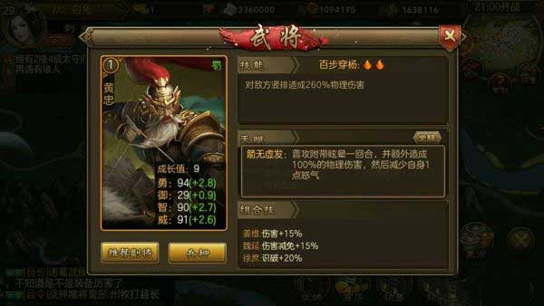 (配合黄忠伤害增加15%,兵种斥候普攻无视闪避集怒快)