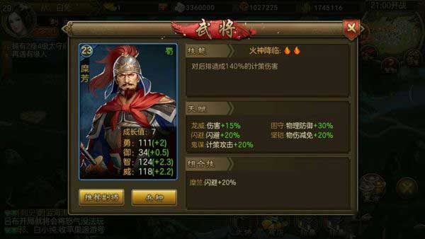 ⑥、 糜芳两怒将技能对后排造成140%的计策伤害,兵种推荐重甲兵受到物理伤害减少20%