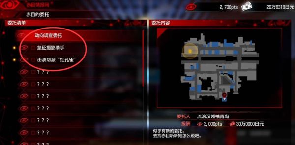 1.这个支线需要玩家将赤目情报网提升到3级,然后赤目会发消息给玩家,回赤目的基地接委托任务,她要玩家去夜总会体验。