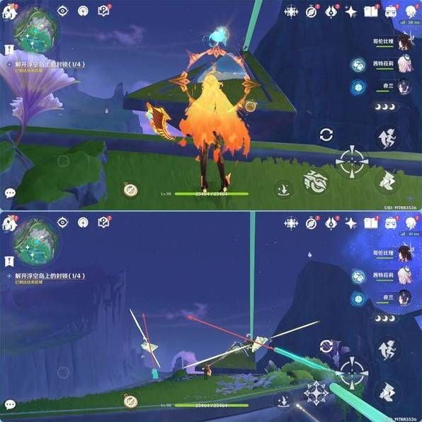 4.到达浮空岛,操控璇珑花旋转棱晶是指与图标重合平行,完成后获得精致宝箱*1